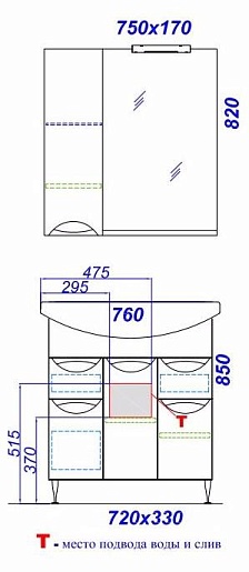 Описание: Тумба под умывальник с 3 ящиками, опорные ножки.