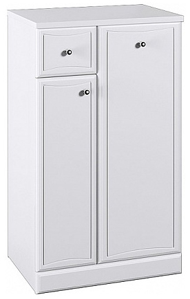 Описание: напольная тумба с двумя дверцами, ящиком и корзиной для белья, для ванной комнаты.