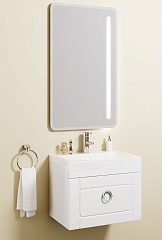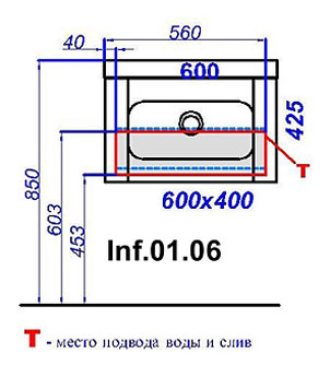 Описание: Тумба под умывальник подвесная, имеет выдвижной ящик полного выдвижения с системой плавного закрывания австрийской фирмы «BLUM» и разделением внутреннего пространства. Раковина Infinity 600, арт. Inf.06.04.D.