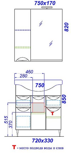Описание: Тумба под умывальник с 3 ящиками, раковина Стиль 75.