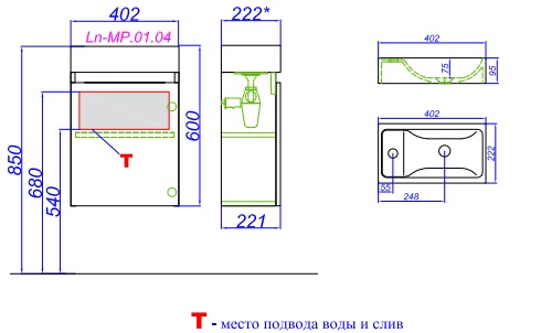 - раковина UNAM 220 (арт. T1.04.04D), универсальный левый/правый умывальник из литьевого мрамора