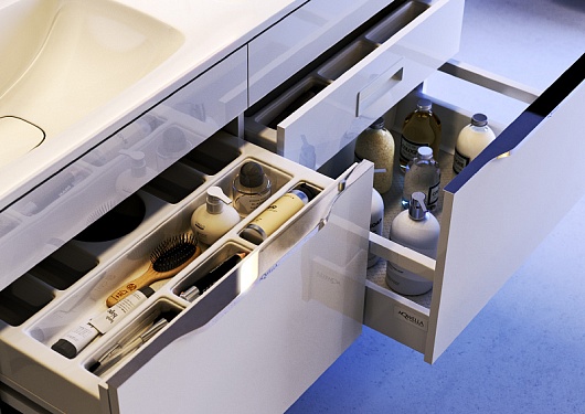 - 2 больших ящика полного выдвижения с системой мягкого закрывания австрийской фирмы «Blum» и внутренними ящиками с разделителями