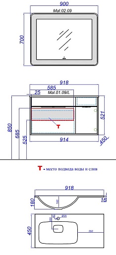 - раковина Malaga 900L (арт. Mal.09.04.D-L), искусственный мрамор, цвет белый