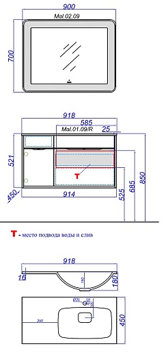 - раковина Malaga 900R (арт. Mal.09.04.D-R), искусственный мрамор, цвет белый