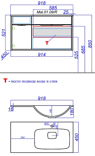 - раковина Malaga 900R (арт. Mal.09.04.D-R), искусственный мрамор, цвет белый