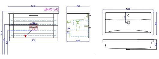 Тумба для умывальника Манчестер 100, подвесная