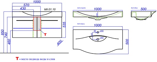 - раковина Bergamo 1000 (арт. Ber.10.04.D), искусственный мрамор, цвет белый