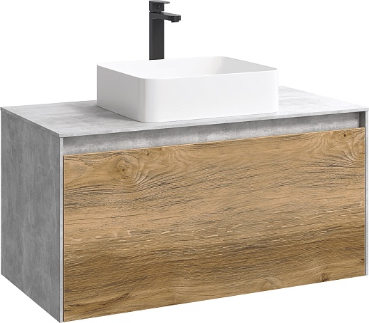 Aqwella Тумба с раковиной Mobi 100 бетон светлый/ дуб балтийский