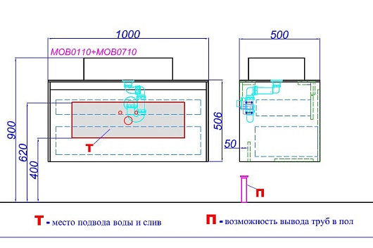 - Фасад тумбы под умывальник, цвет бетон светлый, MOB0710BS