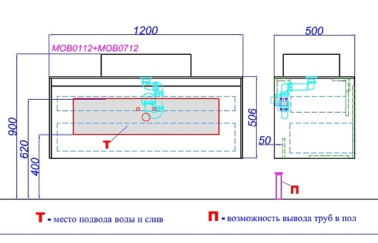 - Корпус подвесной тумбы 120 см под умывальник, арт. MOB0112DB, дуб балтийский