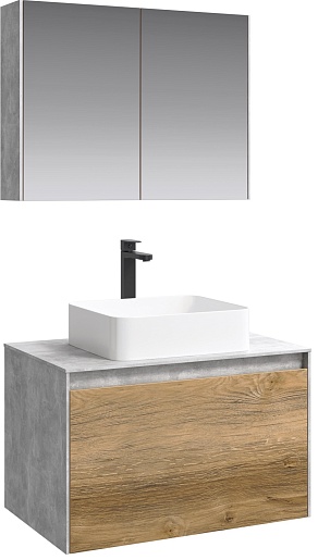 Aqwella Тумба с раковиной Mobi 80 бетон светлый/дуб балтийский