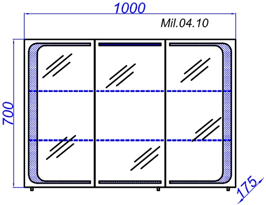 - 3 распашные дверцы с фасадом из влагостойкого зеркала с серебряной амальгамой