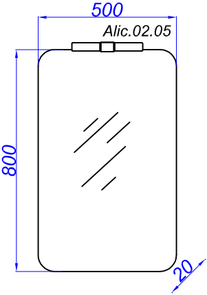 Описание: зеркальное полотно со скругленными углами и светильник 220В