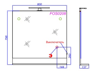 Описание: Зеркало с полочкой, светодиодным светильником и выключателем.