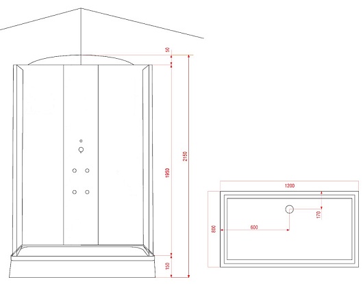Габариты душевой составляют 120х80х215 сантиметров. Есть сиденье, которое позволит отдохнуть – пригодится оно и при гидромассажных процедурах, для которых встроены 4 форсунки. Есть как тропический душ, так и ручной, для последнего предусмотрена удобная штанга. Смеситель обладает тремя режимами работы. Удобный нажимной слив по технологии «click-clack» с сифоном обеспечит равномерный отток воды.