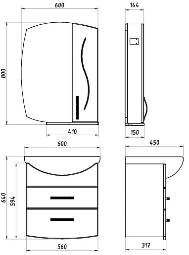 Размеры ШхГхВ: 600х150х800 мм.