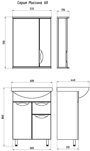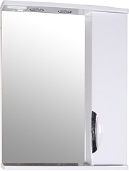 Описание: влагостойкое зеркальное полотно, справа шкафчик с распашной дверцей с доводчиками, полочка нижняя, встроенные в карниз светильники, розетка и выключатель.