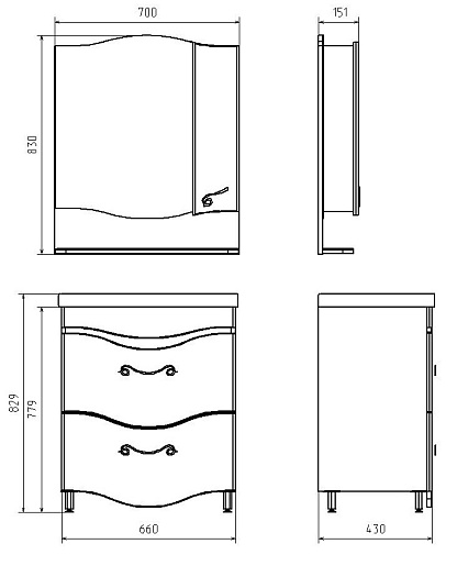 Описание: влагостойкое зеркальное полотно, шкафчик, полочка.