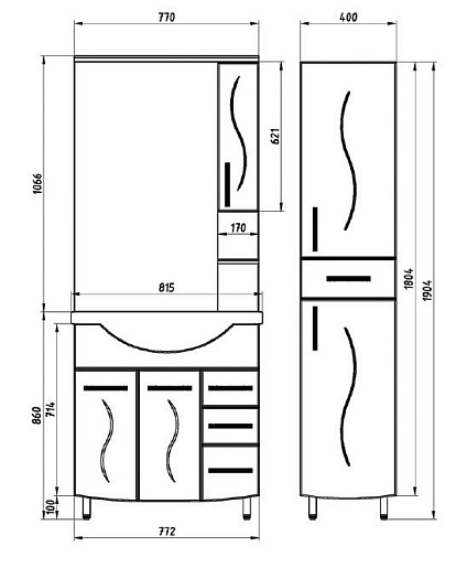 Описание: напольная тумба с тремя выдвижными ящиками и двумя дверцами. Ящики с доводчиками обеспечивают комфортное закрывание. Комбинированные ручки белый/хром имеют удобную для открывания форму.