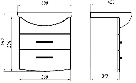 Тумба с раковиной "Грета 60" - арт. 9935 + 15457