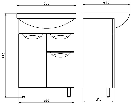 Тумба с раковиной "Мессина 60"
