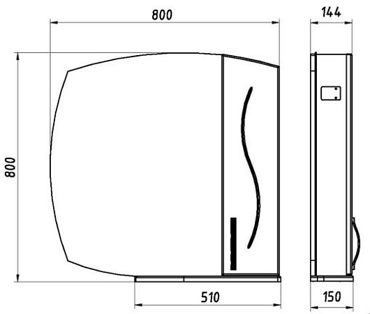 Размеры ШхГхВ: 800х150х800 мм.
