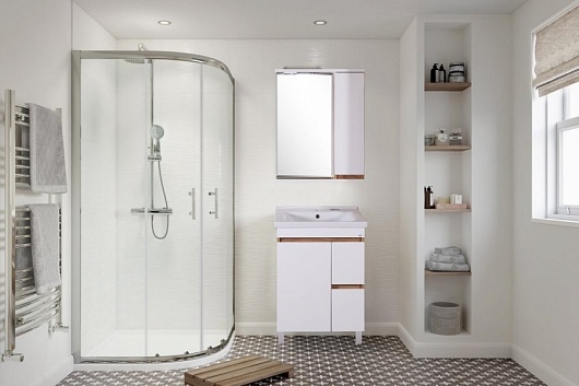 - Оснащение: встроенная подсветка, розетка, выключатель.