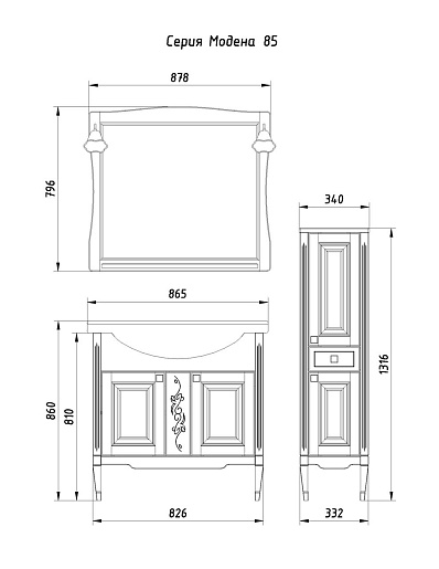 Тумба под раковину Модена 85 белый/патина серебро