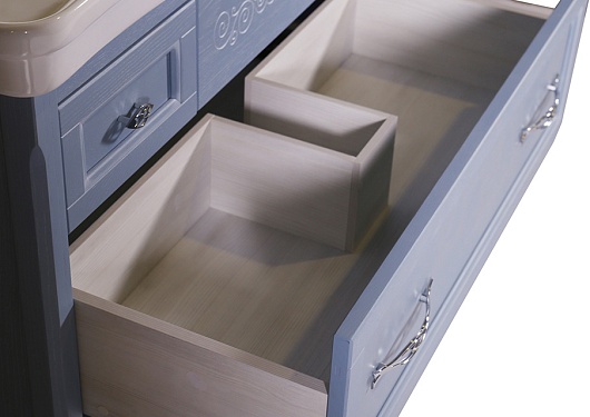 Описание: напольная тумба из массива ясеня, с выдвижными ящиками на доводчиках, прямоугольная раковина Модерн 105, фурнитура европейского производства.