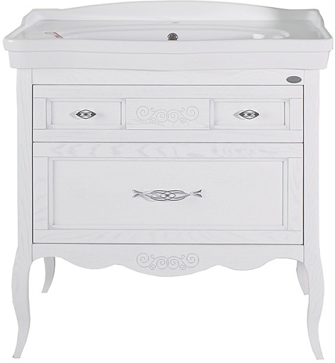 Тумба под раковину Модерн 85 белый (Патина серебро)