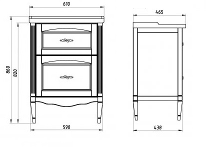 Описание: напольная тумба из массива ясеня, с двумя выдвижными ящиками на доводчиках, прямоугольная раковина "Melana 60", фурнитура европейского производства.