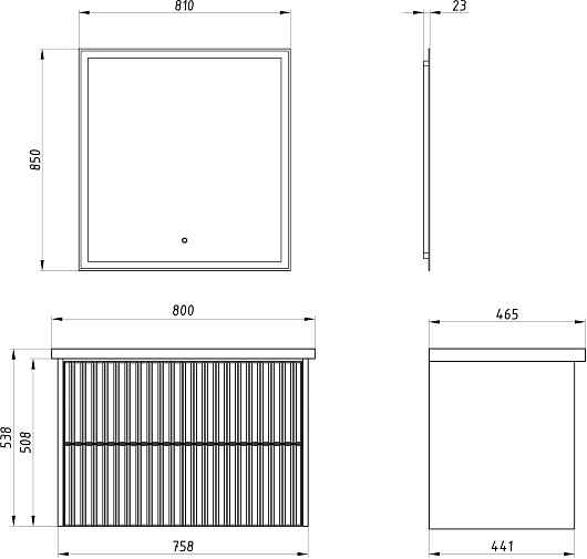 Комплектация: тумба под раковину, раковина, зеркало, столешница.