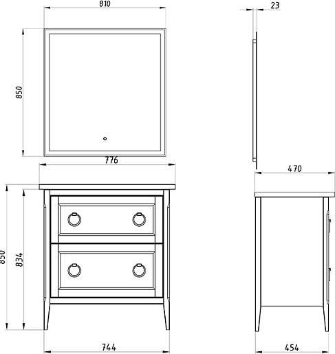 Комплектация: тумба под раковину, раковина, зеркало, ножка (4 шт.).