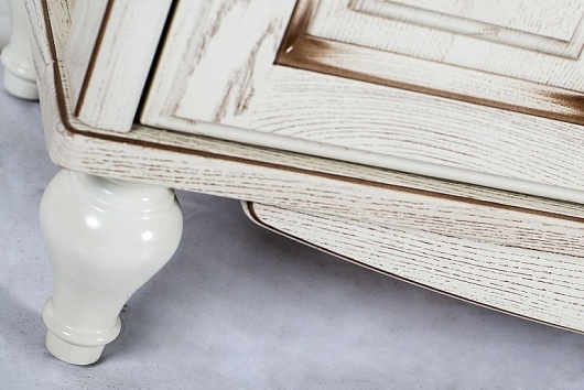 Описание: напольная тумба из массива ясеня с бежевыми фасадами декорированными золотой патиной, комплектуется белоснежной раковиной Стиль 85. Стильные резные ножки, три распашные дверцы и 2 выдвижных ящика с доводчиками. Вся фурнитура от европейских производителей.