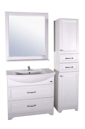 ASB-Woodline Пенал для ванной Берта 40/2 белый/патина серебро, массив ясеня
