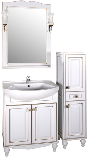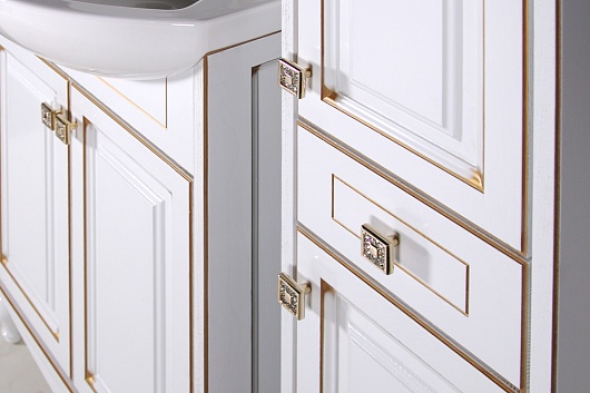 ASB-Woodline Пенал для ванной Верона белый патина, золото, массив ясеня