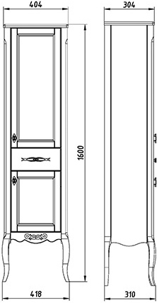 ASB-Woodline Пенал Модерн 40 белый, патина серебро