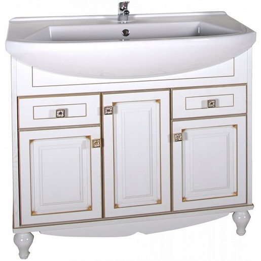 ASB-Woodline Тумба под раковину Верона 85 белый/патина золото