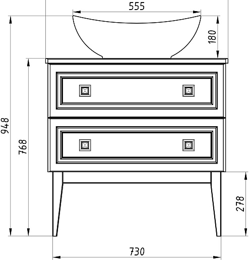 Комплектация: тумба под раковину, столешница, раковина, ножка (4 шт.).