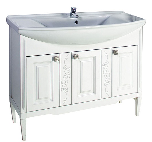 Тумба под раковину Модена 105 белый/патина серебро