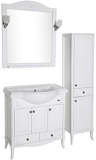 ASB-Woodline Тумба с раковиной Салерно 80 белый/патина серебро, массив ясеня