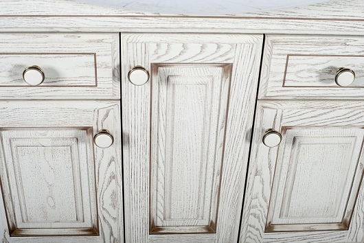 Описание: напольная тумба из массива ясеня с бежевыми фасадами декорированными золотой патиной, комплектуется белоснежной раковиной Стиль 75. Стильные резные ножки, три распашные дверцы и 2 выдвижных ящика с доводчиками. Вся фурнитура от европейских производителей.
