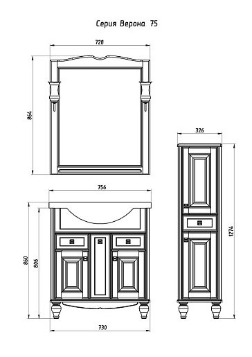 Тумба с раковиной "Верона 75" - арт. 9077
