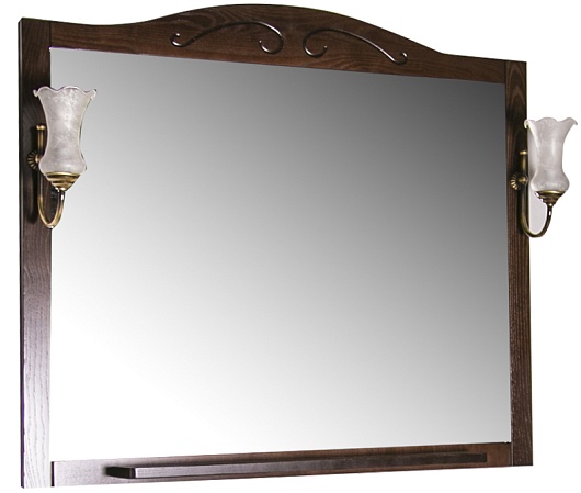 Описание: влагостойкое зеркальное полотно в изысканной раме из массива ясеня, полочка, два светильника.