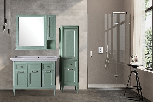 Цвет: фисташка (verde).Комплектация: влагостойкое зеркальное полотно в раме из массива ясеня, полочка.