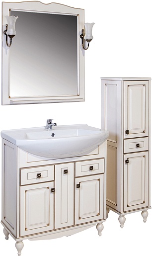 ASB-Woodline Зеркало для ванной Верона 75 бежевое патина, массив ясеня