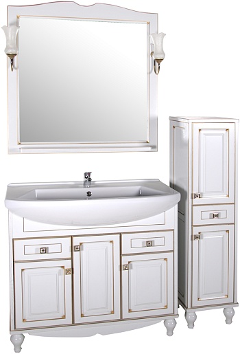 ASB-Woodline Зеркало для ванной Верона 90 белое патина золото, массив ясеня