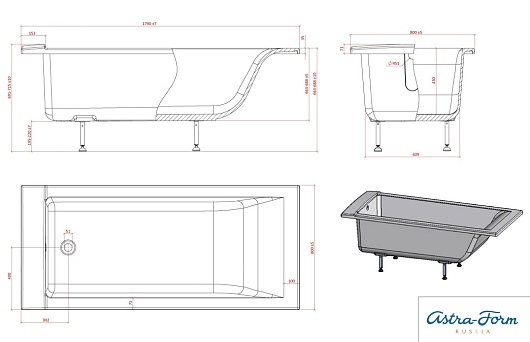 Размер ДхШхВ: 1790х800х691-715 +/-10 мм мм