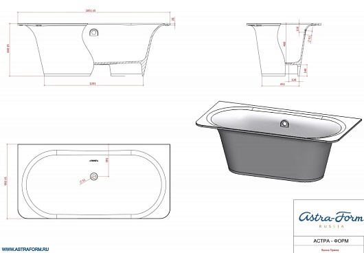 Astra-Form Ванна Прима 185х900, литой мрамор