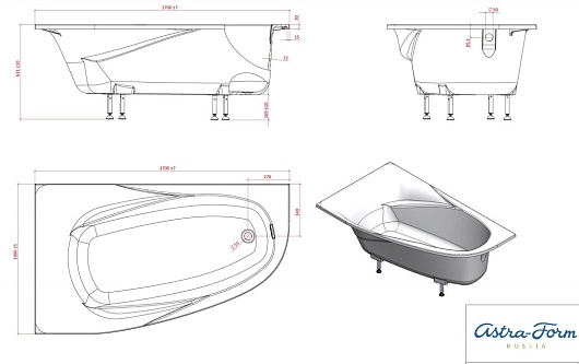 Astra-Form Ванна Селена 170x100 L, литой мрамор